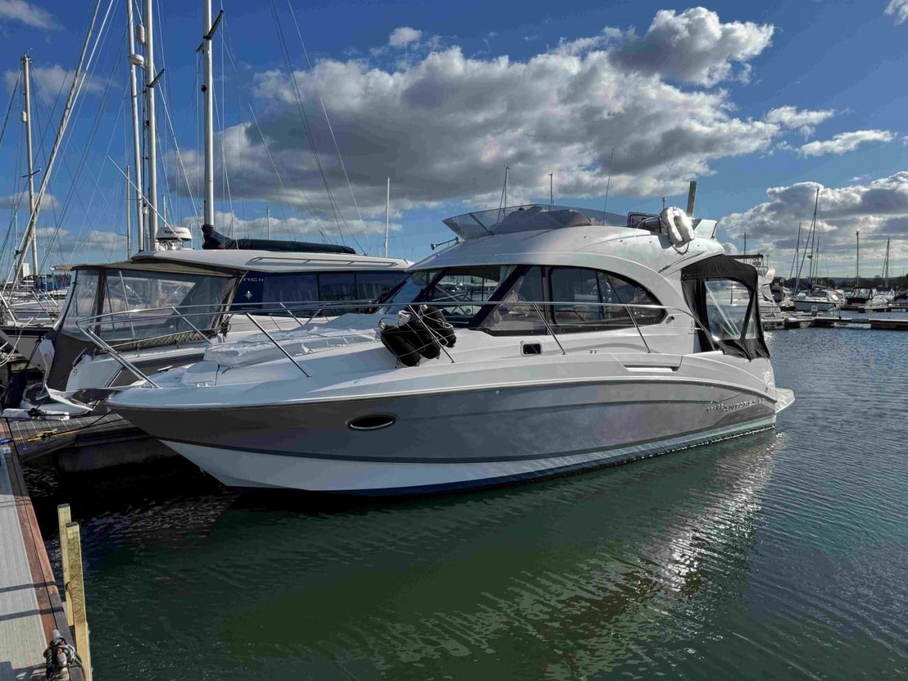 'Shambala' is a beautifully well presented Beneteau Antares 30 Flybridge Cruiser. She is powered by a 370HP single Volvo Penta D6 engine with a shaft drive and benefits from both bow and stern thrusters for ease of close quarter maneuvering. The Antares 30 feels much larger than the little over its 10m length, and boasts plenty of space with the ability of accommodating up to 6 guests with a double berth forward, a twin bunk cabin on the port side and the U-shaped saloon seating that converts into a double berth. The spacious interior cockpit has a good sized C-shaped seating with removable dining table, and galley area on the with a double burner gas hob, oven, sink and fridge freezer. Forward of galley is a raised single help position with double passenger forward facing seating on the port side.