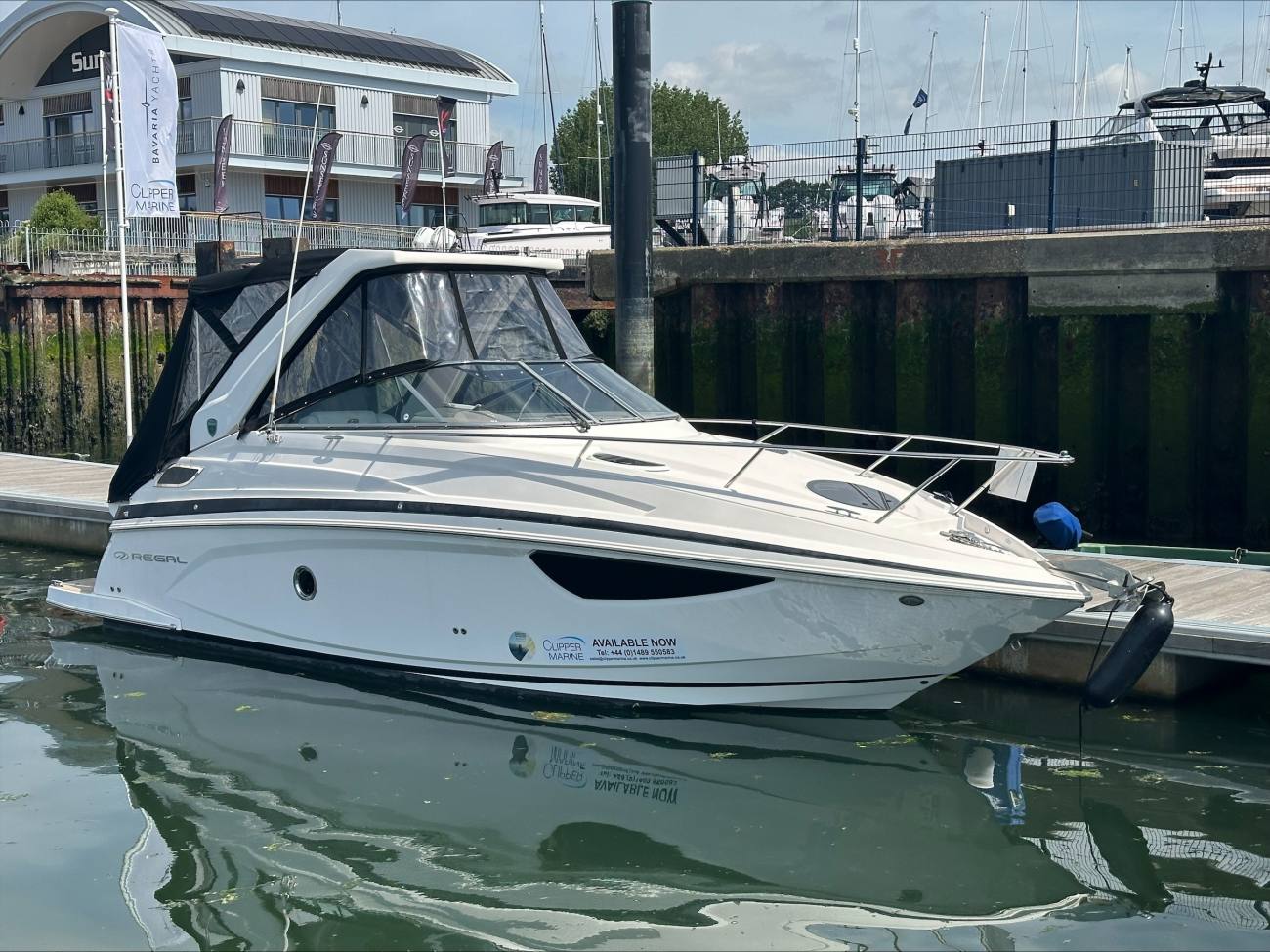 2015 Regal 28 Express fitted with a single Mercruiser 350 MAG petrol engine (300hp) with Bravo 3 drive and just 130 hours from new. "Tipsy Dolphin" is here in Swanwick Marina and benefits from having just been polished, antifouled, synthetic teak bathing platform replacement etc. She has a great spec including bow thruster, trim tabs, Garmin GPSMap 741 GPS/Plotter, VHF radio, stainless steel anchor, electric anchor windlass, full hoods etc etc.