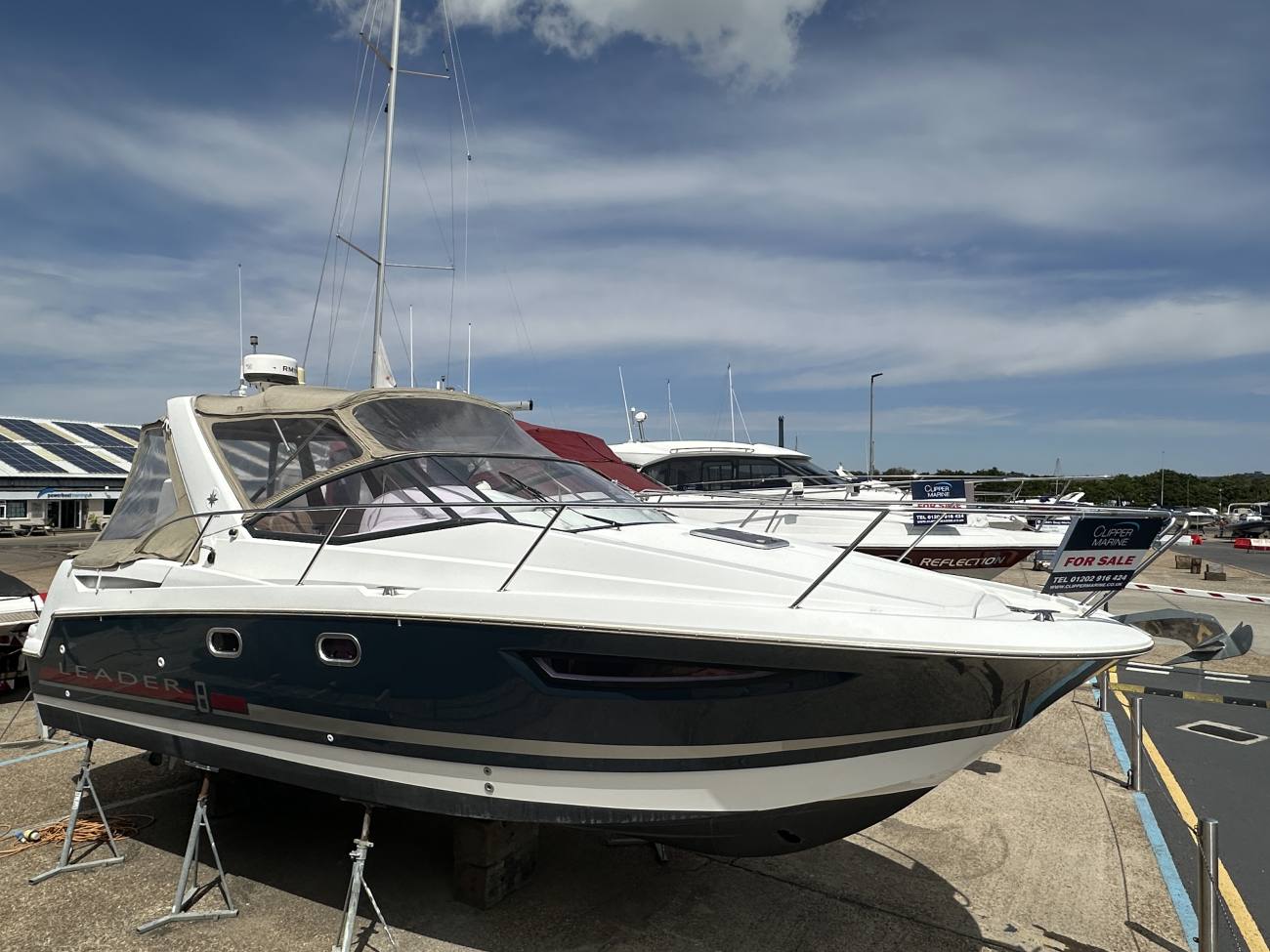 2013 Jeanneau Leader 8 fitted with a single Volvo Penta 5.7 GXi petrol engine (320hp) with only 283 hours. "Troisieme" has a good specification including blue hull, "Preference" package with extended bathing platform with teak, electric anchor windlass, GRP radar arch with full camper hood, bow thruster, saloon bed conversion, Garmin GPS Map 750S and Standard Horizon VHF.