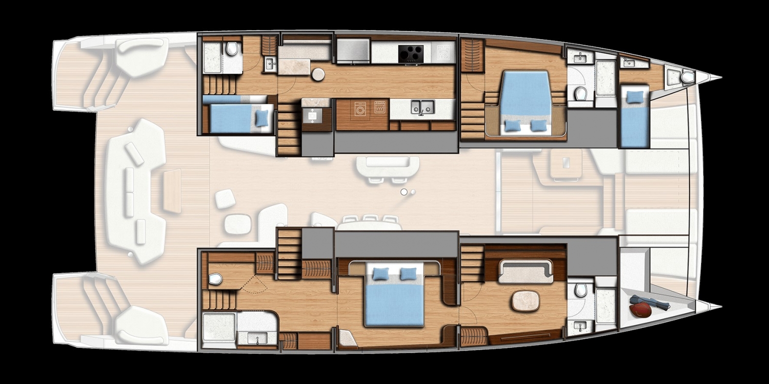 Developed by Xavier Faÿ in collaboration with Briand Yacht Design and Berco Design + Piaton, the naval architecture of the BALI 7.0 reflects the increase in size whilst preserving the ease of sailing and the consistency of the marine qualities so characteristic of a BALI catamaran.