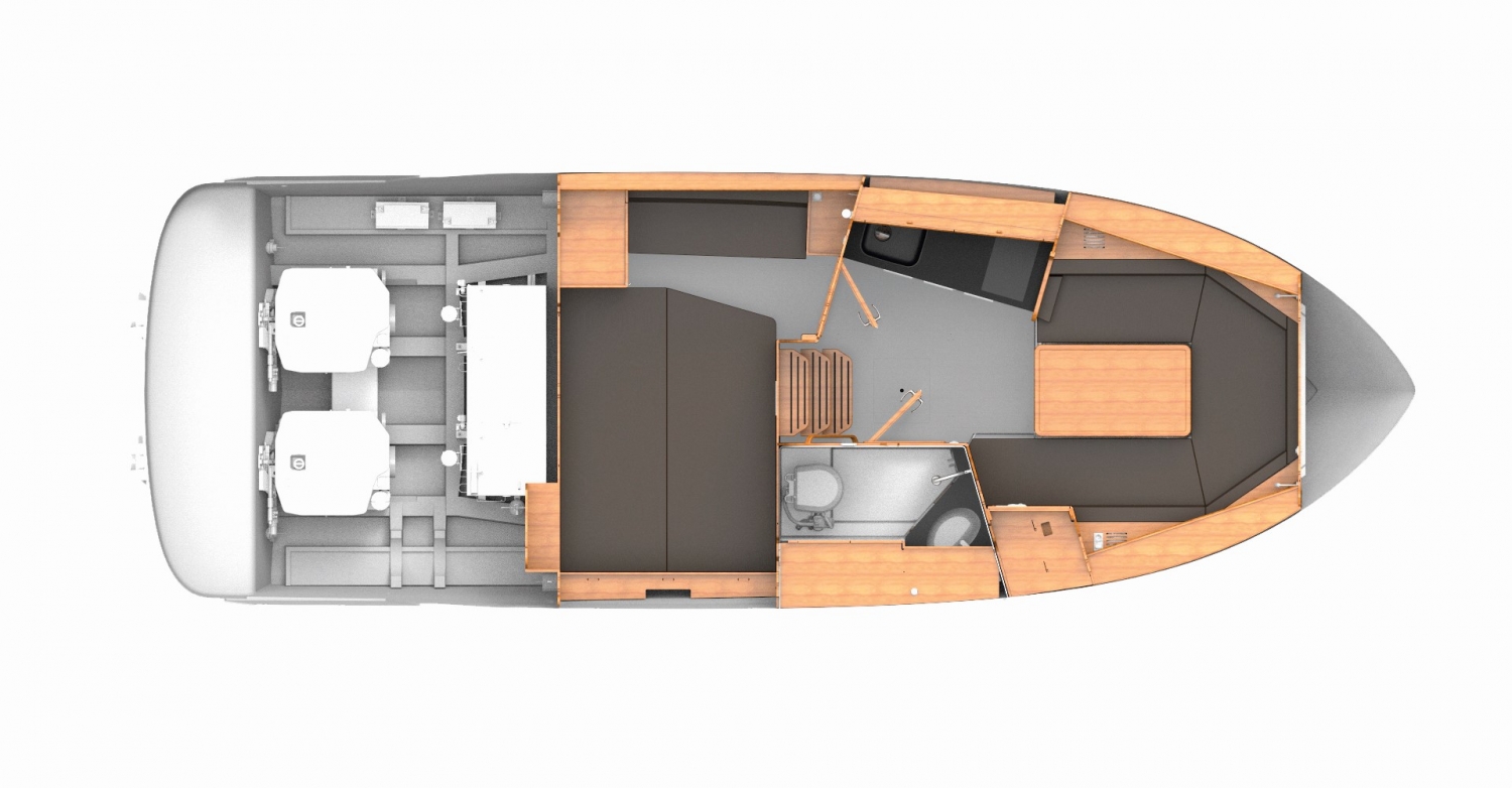 Glide over the waves at more than 35 knots (depending on the engine variant) and relish the feeling of freedom. Freedom through space – of which there is much on the BAVARIA S30. Space for the front passenger to relax and enjoy the fresh air. It is just as pleasant for the helmsman, who benefits from the ergonomic design of the helmstation. A clever hull design in stable sandwich construction and a high freeboard ensure safety and precise handling. As with all BAVARIA motor yachts fun is guaranteed for everyone on board.
