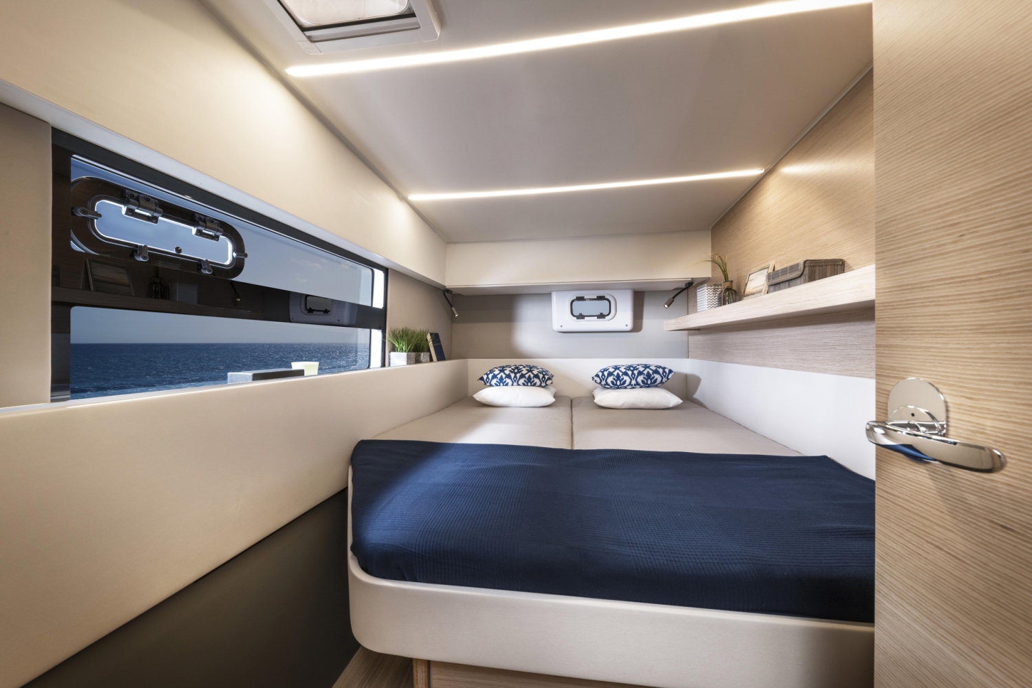 Deck, cockpit and saloon are on one flush deck level, but that’s not all that makes the 40 Open so unique. It is the epitome of elegance, very light and comfortable.