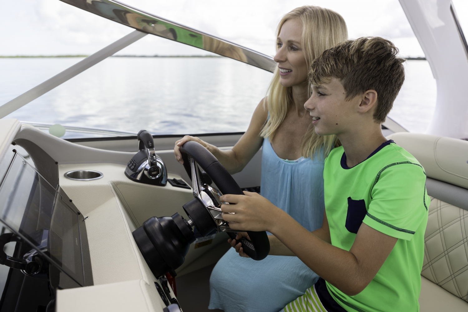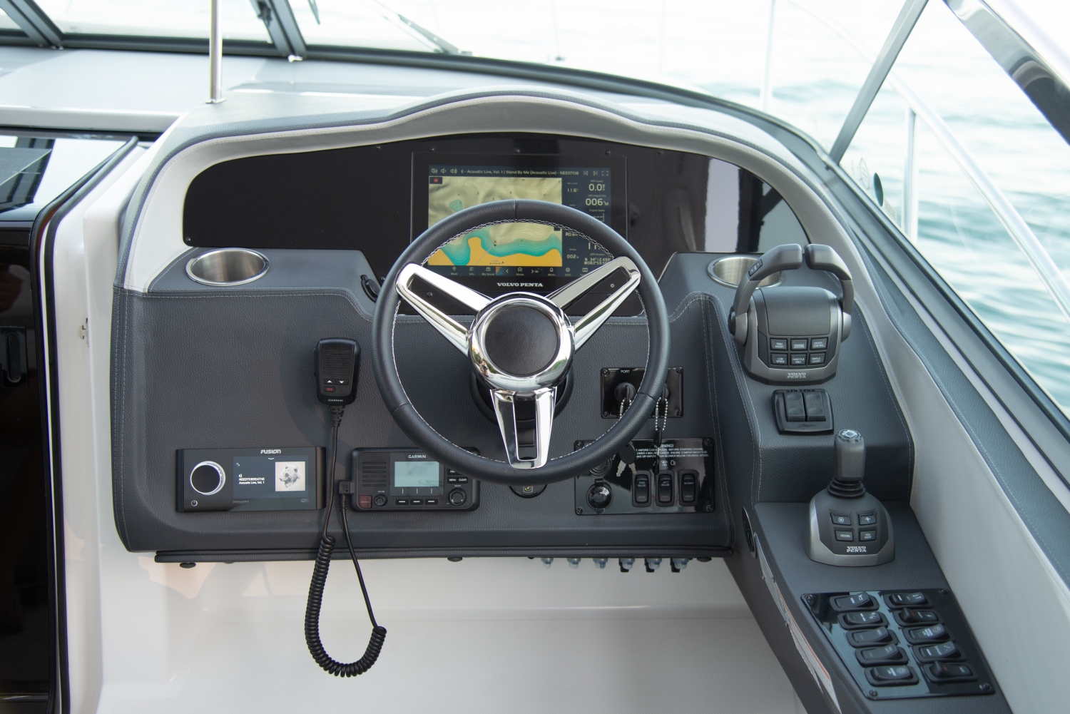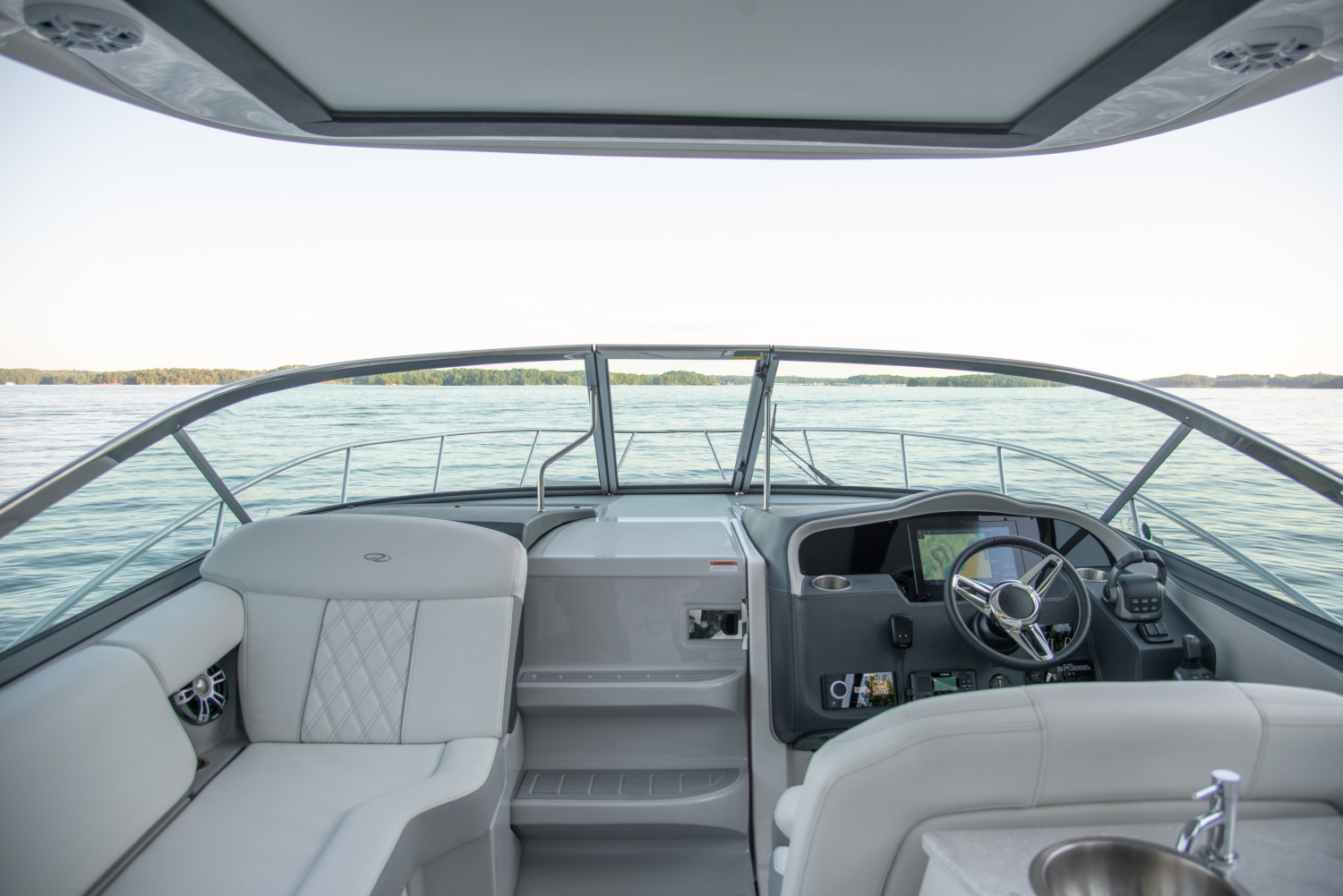 Stay protected from the elements wile enjoying the open air with the innovative and stylish addition of the Hardtop, or elevate your boating experience with the 33 Express's PowerTower, which raises and lowers with the touch of a button.