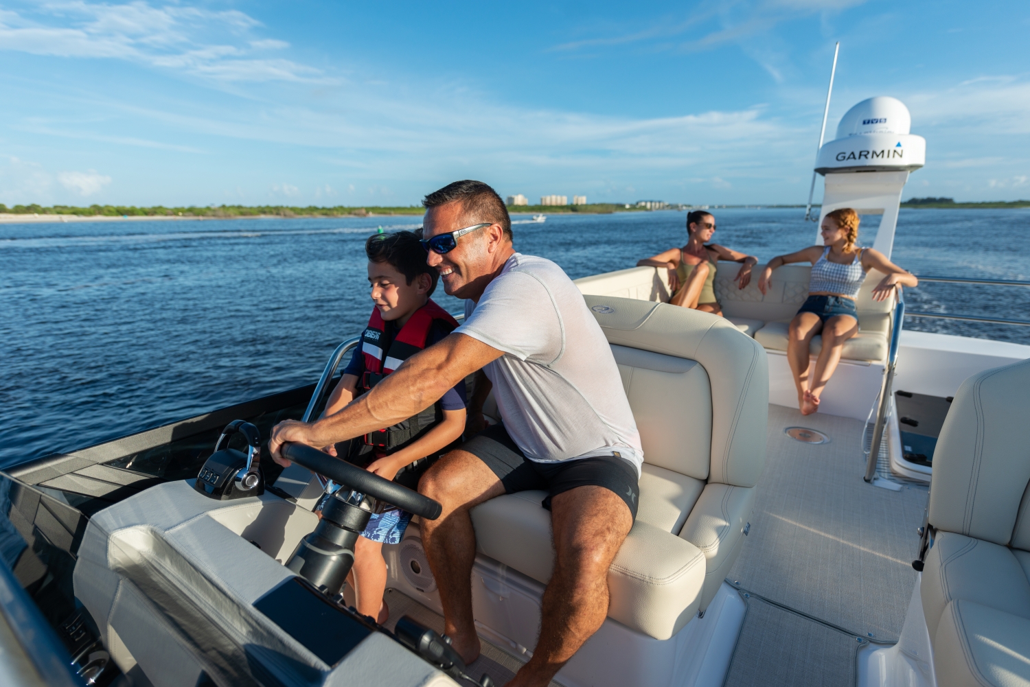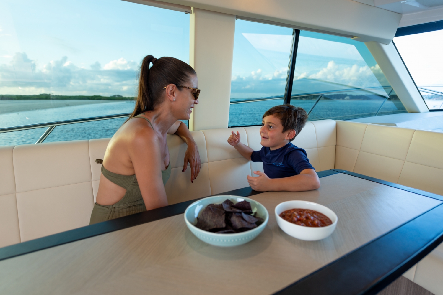 Take your family only steps away to the beach thanks to the outboard engines. The 42 FXO is the only model in it's class to be able to do this.