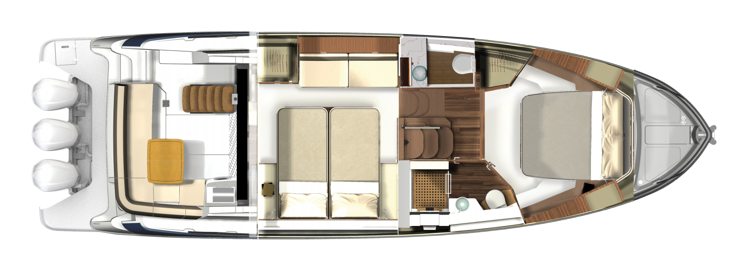 Customise your 42 FXO for your needs. Choose either a refreshment centre or a second head in the cabin.