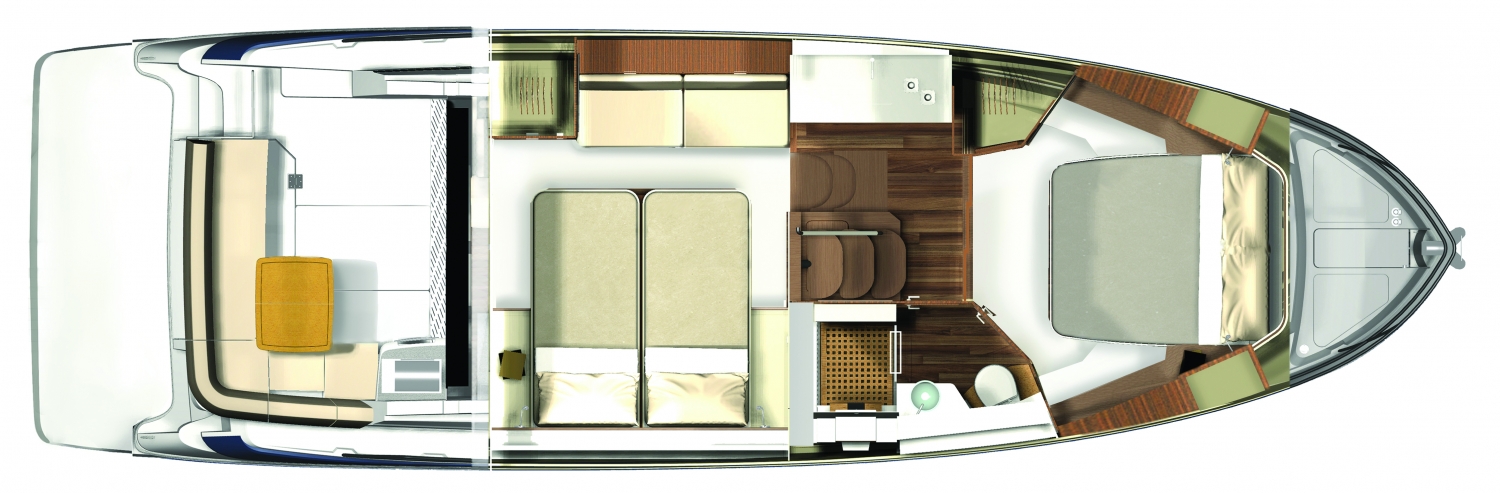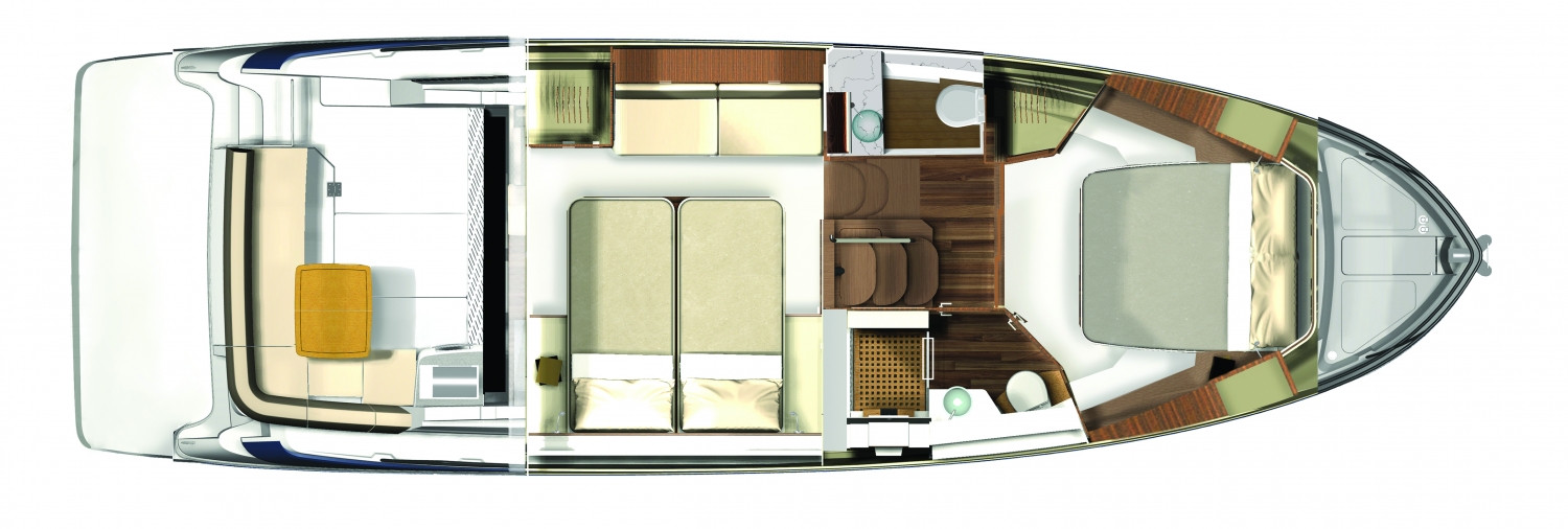 Lay back, enjoy the sunshine, or sit up and watch the water on the multiposition foredeck sunpad. The optional cabana is perfect if you love the view but want some shade.