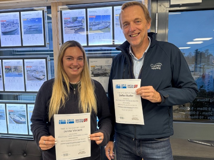 We are pleased to announce that Jenna from Poole and Steffen from Palma have successfully completed the Practical Yacht Brokers Course, delivered by the Association of Brokers & Yacht Agents (ABYA) in partnership with British Marine.